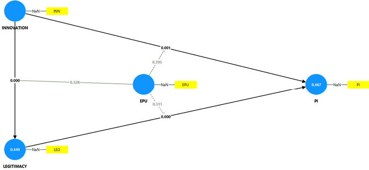 This study analyzes the interaction between state legitimacy, innovation, and economic policy uncertainty on EV purchase intention in Germany, Greece, Spain, France, Croatia, Ireland, and Italy. Using partial least squares structural equation modeling (PLS-SEM) with SmartPLS, several hypotheses were tested to explore these relationships.