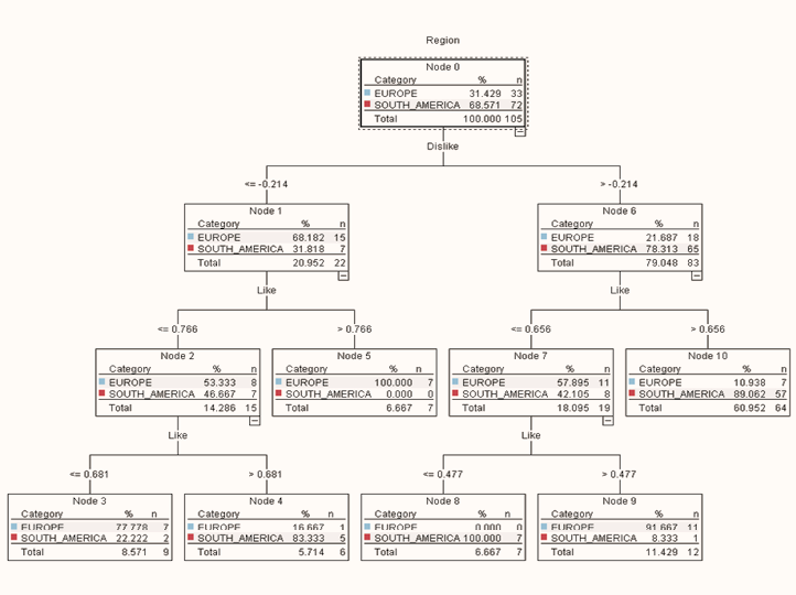 Finalmente, se empleó el método de clasificación C5, utilizado por Guillen y Turpo (2025), debido a su eficacia para analizar y clasificar textos con base en emociones y criterios específicos, lo que permitió identificar patrones relevantes en las evaluaciones teniendo en cuenta las regiones de origen y los sentimientos asociados.