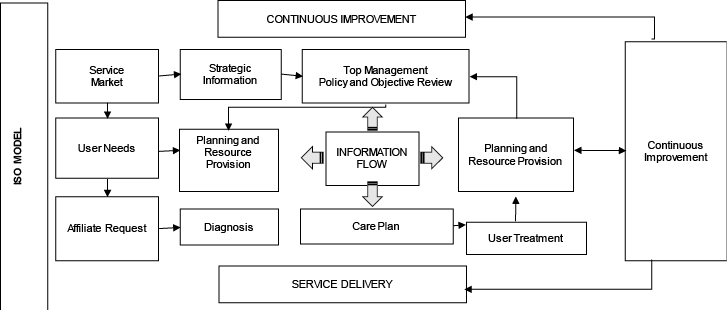 Este modelo se caracteriza por una evaluación integral de los servicios prestados por las instituciones de salud, contrastándolos con estándares nacionales e internacionales de calidad. Además, se enfoca en aspectos clave de la gestión organizacional, tales como la mejora continua, la prevención y control de infecciones, el liderazgo institucional, la seguridad en las instalaciones, la formación continua del personal y la gestión eficiente de la información clínica y administrativa (Diagrama 2).