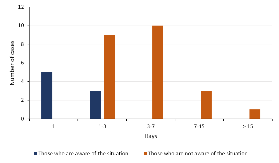 FIGURE 1. Time elapsed (d) from the emergence of clinical symptoms or the observation of swallowing vs the number of cases