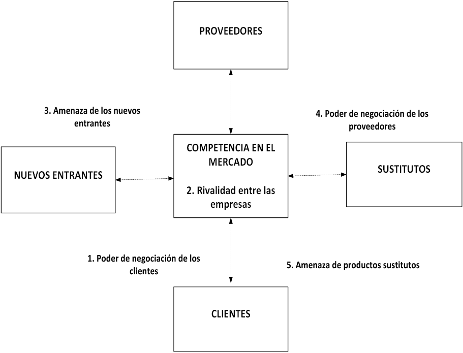 Amenaza de nuevos competidores. Morales (2019) indica lo fuerte que es la barrera de entrada al mercado en el que se mueve la empresa. Esta barrera de entrada puede venir dado por factores externos a la empresa, para la busqueda de nuevas estrategias y soluciones para la compañía, se consiguen crear barreras mas grandes para que sea mas dificil para las nuevas empresas.