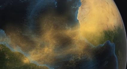 La segunda visión es la de un video de la NASA producto de una observación satelital llevada a cabo entre 2007 y 2013 en la cual se muestra la interconexión del desierto del Sahara y el Amazonas.