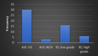 were higher in 30-to-39-year-old group (46,7%). Non-specific atypical glandular