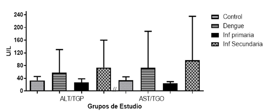 aminotransferasas fue alta en pacientes con dengue, no obstante, al comparar