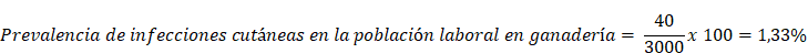 de infecciones cutáneas fue 2,4%, estratificada en 1,33% para ganadería y 1,06%