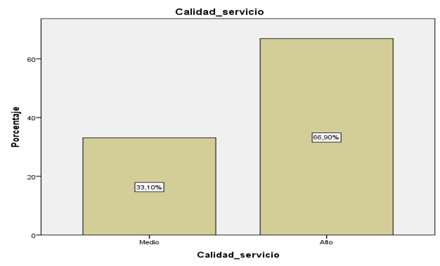 En este sentido el gráfico 1 representa los datos sobre la Calidad de servicio percibida por los estudiantes universitarios, donde el mayor porcentaje se encuentra en el nivel alto con un 66,90 %.