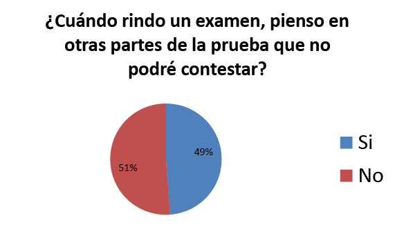 Con relación a la dimensión de componentes afectivos, respecto a la ansiedad que se presenta en los estudiantes por las evaluaciones que se realizan en el curso de Argumentación Jurídica, es innegable la preocupación que siente el estudiante de cómo saldrá en sus evaluaciones, muy aparte de si se encuentra motivado o no durante el desarrollo del curso (Gráfico 3).