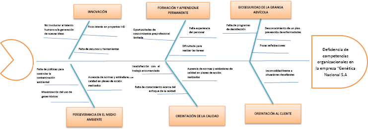 Esto permitió mediante trabajo grupal con los expertos, definir las problemáticas alineadas a cada competencia, ampliar la comprensión del problema, visualizar las razones, y posibles soluciones para tomar decisiones y, organizar el plan de acción o las acciones de mejoras para la Avícola GENÉTICA NACIONAL S.A.