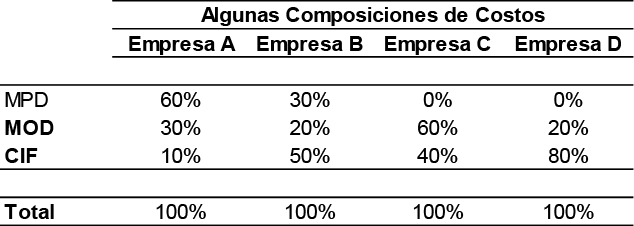 Existirán composiciones de costos según existan tipos de organizaciones y la determinación de ellos pasa, entre otras cosas por el sistema de costos a utilizar, ya sean sobre bases históricas o predeterminadas, según señala Polimeni et al, (1989) por la correcta identificación de los costos directos y por la mejor asignación posible de los costos indirectos. Por ello en aquellas empresas donde la componente de costos indirectos es alta, la probabilidad de una mejor asignación va requerir la utilización de un apropiado sistema de distribución de costos y de la identificación de bases de distribución representativas del tipo de costo de que se trate.