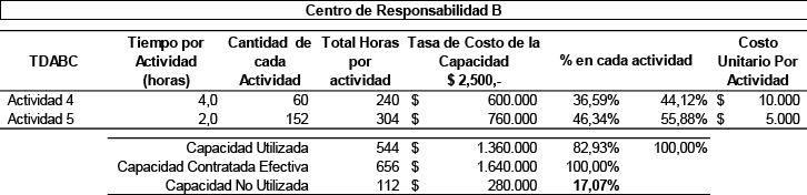 Costo de la capacidad para Centro de Responsabilidad B