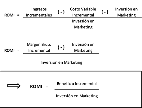 Es en sentido que al revisar las acciones internas y externas se generan variaciones de costos que afectan la determinación el RMI, por lo tanto, es perfectamente posible aplicar este concepto sobre los valores incrementales señalados por Mendez & Estevez (2016) al referirse al Rendimiento Operativo sobre las Acciones Incrementales de Marketing [ROMI], como medida de la rentabilidad financiera de las acciones realizadas para demostrar que éstas contribuyen a la creación de valor para los accionistas.