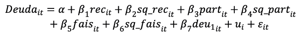 Resultados del modelo de regresión por efectos fijos variable dependiente deuda