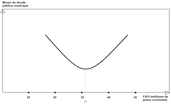 Es posible señalar que, a partir de ese nivel, se refleja una reducción en los niveles de deuda. En concordancia, Chapa y Treviño (2013), sostienen que el incremento en el envío de participaciones federales a los municipios, se presenta como un sustento de pago de deuda. Lo que significa, desde esta óptica, que mayores participaciones podrían generar mayores posibilidades de obtener deuda.