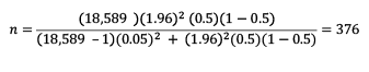 En este caso, la población a estudiar estará conformada por 18,589 colaboradores del sector público de Arequipa (Arias, 2021). La muestra se estableció mediante el método estadístico probabilístico aleatorio simple en 376, obtenido por medio de la fórmula de población finita: