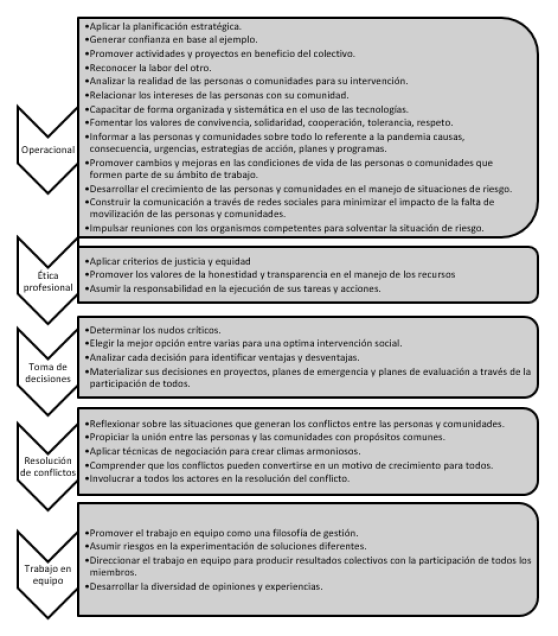 La dimensión operacional implica la forma de cómo se ejecutan las acciones para reconocer, adaptarse y sobreponerse a las situaciones adversas que ha ocasionado la pandemia, en esta dimensión cobra especial importancia el liderazgo resiliente, cargado de alta ética profesional, toma de decisiones acertadas, trabajo en equipo y amplia resolución de conflictos.