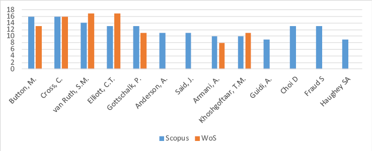 Esta investigación se basó en un análisis bibliométrico de artículos publicados en el tiempo sobre el tema del fraude, incluidos en las bases de datos globales Scopus y Web of Science, según Stallings & Ferris (1988), Houston & Delevan (1990) y Duque & Cervantes (2019), las publicaciones científicas, incluidas en esas bases de datos, ofrecen elementos claves para medir aspectos importantes de la ciencia como autores personales, direcciones institucionales, títulos de revistas, indicando no solo el país de origen de la publicación, sino también el campo de investigación y su estado del arte, citas y palabras claves (Lewison, 2004), por medio de ellas se constituyen los bloques con los que se construye la ciencia, además de una fuente inestimada de datos (Moya & Olmeda, 2010).