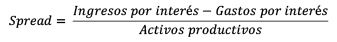 Un indicador del desempeño bancario es el denominado spread, que mide el diferencial de las tasas de interés de los préstamos (tasa activa) y de depósitos (tasa pasiva). Al respecto, Birchwood, Brei y Noel (2017) afirman que, cuando las instituciones poseen diferenciales muy altos, esto podría reflejar una situación de ineficiencia interna. Por su parte, Gelos (2009) amplía el estudio de la rentabilidad bancaria, considerando el Margen de Interés Neto (NIM). El NIM es calculado como la razón entre ingresos por interés netos y activos que devengan interés (activos productivos).
