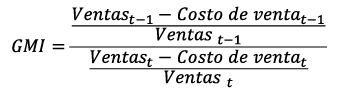 Índice de margen bruto [GMI] mide la relación entre el margen bruto del año anterior y el del año analizado. Un resultado negativo del margen bruto de ventas representa un contexto desalentador para la empresa, por tal razón el aumento de las ventas y/o disminución de los costos de venta puede ser un mecanismo viable para enmascarar el resultado real de la empresa.