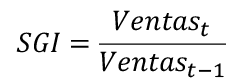 Índice de crecimiento de ventas [SGI] mide el crecimiento de los ingresos en un año con respecto a los ingresos del año anterior. El aumento de las ventas puede ser un comportamiento normal a interior de la empresa, pero un crecimiento de las ventas provoca una mayor necesidad de capital (Terreno et al, 2020). Esta necesidad de financiación pudiera ser un detonante para aumentar los resultados contables con el propósito de conseguir capitales a menor costo.