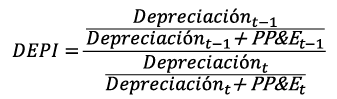 Índice de depreciación [DEPI] mide la relación entre el gasto de depreciación y el valor bruto de PPE en un año con respecto al año anterior. Una variación de este índice puede ser motivo de la implementación de un nuevo método de depreciación que permita la disminución de este índice o la redefinición (incremento) de la vida útil de los activos.