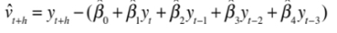 y la estimación de vt+h es la componente cíclica, h es el desfase temporal que probablemente prediga de forma incorrecta. Hamilton menciona que para la mayoría de series temporales macroeconómicas y financieras un horizonte temporal de 2 años puede ser adecuado de considerar para capturar las fluctuaciones de mediano plazo.