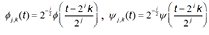 Donde los coeficientes aj,k y dj,k, se calculan en forma discreta de la siguiente forma (Gao & Yan, 2011):