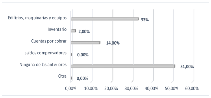 No obstante, se observa la preferencia por comprometer activos fijos como maquinarias y equipos, posiblemente porque representan mayor garantía para los acreedores o porque al empresario le es más fácil responder con estos. Lo importante es cumplir con la deuda asumida, porque de lo contrario, los empresarios comenzarían a descapitalizarse ante la pérdida de estos activos, fundamentales en el proceso productivo.