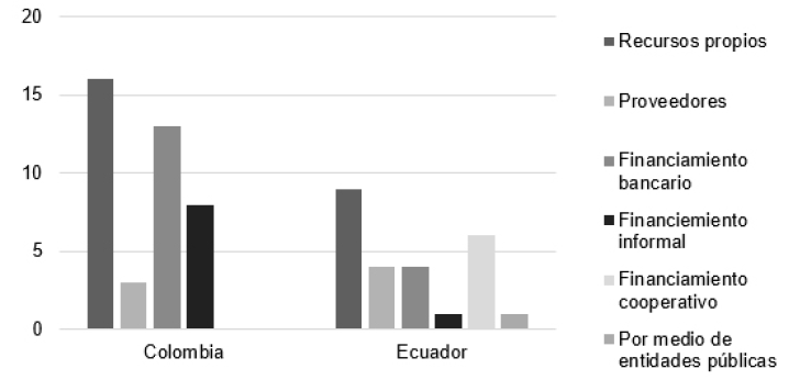 En la mayoría de los casos se evidenció que prefieren no endeudarse para financiar su actividad. Sin embargo, se destaca en el caso de los artesanos de Colombia que el sector informal sería origen del financiamiento de las actividades de este sector. En cuanto a la financiación de los emprendimientos artesanales ecuatorianos, se destaca al financiamiento cooperativo, debido a su auge y fortalecimiento a partir de la normativa de gobierno enmarcada en la economía popular y solidaria, sus principales clientes son los consumidores finales.