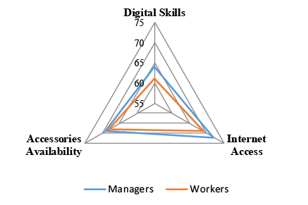 This research validated the existence of differences in workers and managers in the conditions to apply telework in relation to internet access, mastery of digital skills and the availability of complementary computer accessories. However, these conditions were not found to significantly influence the levels of satisfaction experienced by both groups, which did not allow corroborating the results of previous investigations (Sewell & Taskin, 2015).