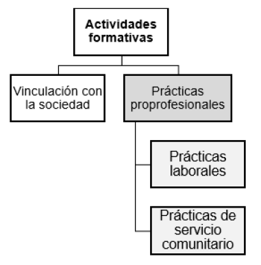 De acuerdo con la LOES (2018) las actividades formativas que deben cumplir los alumnos de tercer nivel como parte de su formación y que le permite hacer un contacto con la realidad de su profesión, fortaleciendo sus habilidades y competencias, se reflejan en el Diagrama 3: