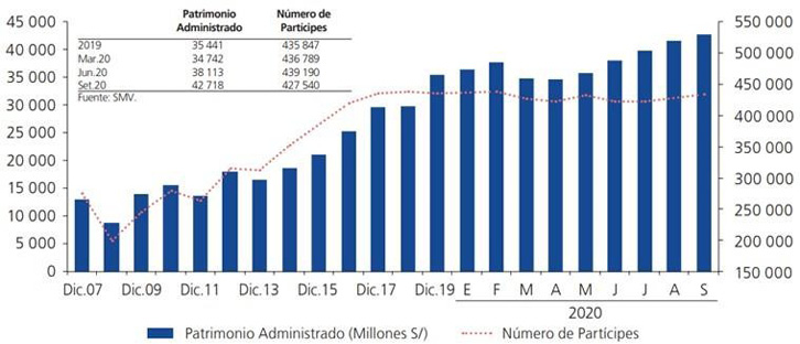 Se observa una evolución positiva del desenvolvimiento de sus fondos, como se muestra en el Gráfico de patrimonio administrado y el número de partícipes de los fondos mutuos, es por ello que para el inicio de la pandemia era natural un desenvolvimiento estable al principio del primer trimestre, Sin embargo, para los meses posteriores del mes de marzo, se vio una caída de sus fondos. Esto resultó ser un patrón relacionado con el contexto que se vivía en época de la pandemia SARS-CoV-2, es entonces que se ve una caída de los fondos mutuos de la renta fija; lo que a su vez hace que las AFP tengan una rentabilidad menor, a lo que se presentaba a inicios del periodo 2020, como se ha mostrado en la figura 5 de rentabilidad acumulada de los fondos de las AFP.
