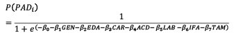 Las variables que se han definido para la presente investigación se muestran en la Tabla 1, con su respectivo código, indicadores, las categorías de datos y la escala, definiendo a continuación cada una de las variables que se plantearán en los modelos de regresión logística binaria (MRLB). La variable dependiente se denomina posiciones de alta dirección (PAD), la cual es una variable dicotómica que toma valores de uno o cero si llega o no la persona a ocupar un puesto de alta dirección en la empresa, el mismo que puede ser de gerente general, director general, presidente o vicepresidente. Los demás puestos son considerados como de liderazgo.