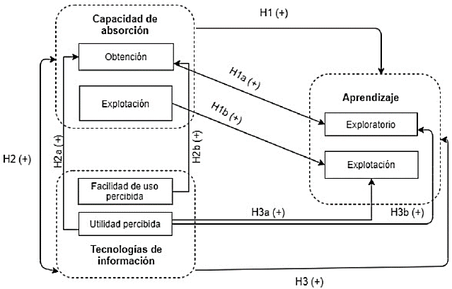 Investigaciones previas de la capacidad de absorción, aprendizaje y TI (Abarca & Barreto, 2020) han permitido identificar posible identificar vínculos entre dos de las variables y sus dimensiones; sin embargo, esto implicaba que el modelo se encontraba algo incompleto; por lo tanto, la investigación ha considerado las relaciones entre más de dos variables para mejorar modelo teórico previamente planteado, se han encontrado importantes similitudes con investigaciones previas.
