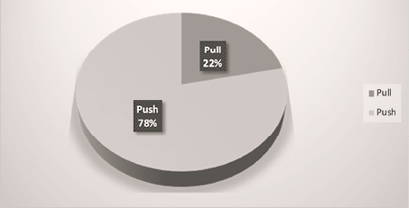 En cuanto a las implicaciones para la gestión innovadora y emprendedora dentro de la universidad, la actitud de la Spin-off, entendido el Push, que busca “empujar” a los clientes hacia la adquisición, y la táctica de Pull como lo refleja el gráfico 5, que persigue que sean los consumidores quienes se sientan atraídos por la marca, se presentan en la siguiente figura los resultados.