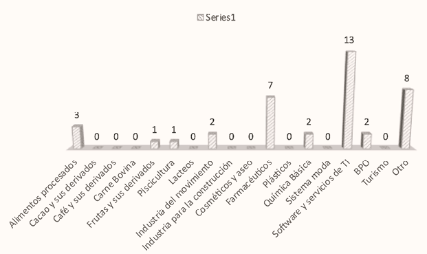 No todas las Spin-off que se han creado han considerado aspectos ambientales y-o de economía circular, ya que principalmente están asociadas a los sectores y cadenas productivos privilegiados en Colombia, como: alimentos procesados, cacao y sus derivados, café y sus derivados, carne bovina, frutas y sus derivados, piscicultura, lácteos, industria del movimiento, industria para la construcción, cosméticos y aseo, farmacéuticos, plásticos, química básica, sistema moda, software y servicios de TI, BPO y turismo (gráfico 6).