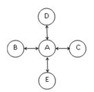 Diferentes organizaciones establecen vínculos de cooperación simples simultáneos, con una organización central que asume el liderazgo. Cuanto más pequeña sea una red y más débiles los vínculos de cooperación, mayor será su tendencia a tomar la forma de estrella. |