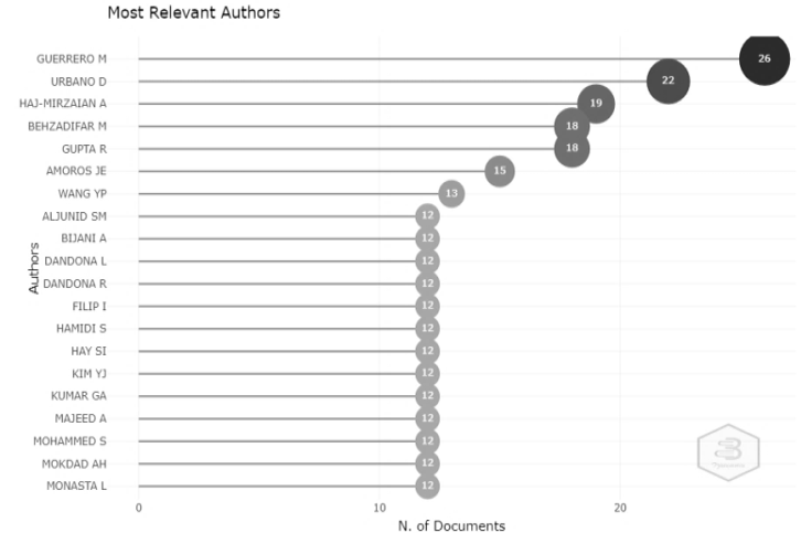 Los trabajos de los tres autores con más publicaciones se encuentran dentro de las siguientes líneas de investigación: i) Guerrero trabaja el contexto del emprendimiento desde distintas perspectivas, algunos de sus trabajos versan sobre el emprendimiento en las universidades (Guerrero et al, 2016), otros describen de la influencia de distintos actores en dicho fenómeno y su relación con la innovación (Guerrero & Urbano, 2017; 2019), y en sus investigaciones más recientes describe el contexto del emprendimiento dentro de la teoría de ecosistemas de emprendimiento (Fischer et al, 2022; Guerrero, Liñán, & Cáceres, 2020).