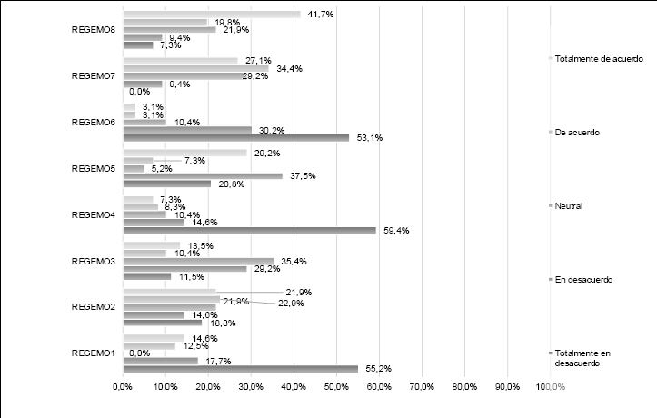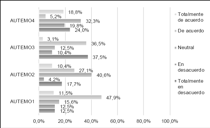 Estos resultados son congruentes con la falta de una presencia o visión multinacional de las empresas participantes en el estudio, en contraposición con aquellas que promueven el desarrollo de sus trabajadores y llevan a cabo una gestión del ambiente laboral que influye en las competencias emocionales de orden intrapersonal e interpersonal.
