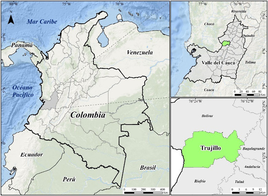 El municipio de Trujillo, ubicado en el corazón del departamento del Valle del Cauca y parte integral del Paisaje Cultural Cafetero, destaca por su rica herencia cultural y su entorno natural, con un enfoque arraigado en la producción de café como motor de empleo rural (mapa 1).