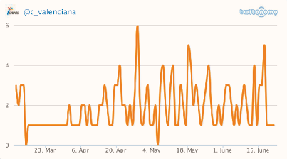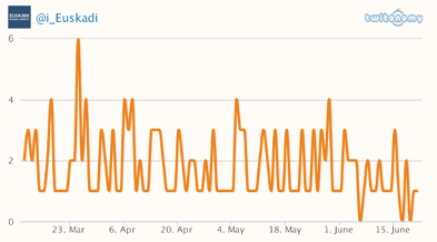 Although it is true that the Comunidad de Valencia account has a relatively less active phase in the period between March 15 and 31 (publishing from one to no tweets per day), the accounts have a very similar flow, reaching their peak volume with 6 tweets published (on March 25, in the case of “Turismo Euskadi”, and April 28, in the case of “Turismo de la Comunitat Valenciana”) and an average of 1,80 (Pais Vasco) and 1,88 (Comunidad de Valencia) tweets per day in the study period.