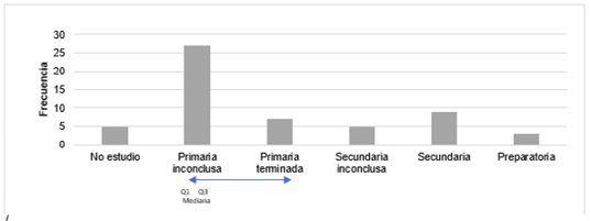 Representatividad de niveles de estudio en la muestra de personas que se dedican a la pesca artesanal en Punta Flor, Arriaga, Chiapas