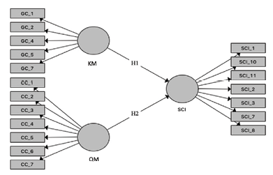 Abbreviations: SCI, supply chain integration. KM, knowledge management. QM, quality management.
