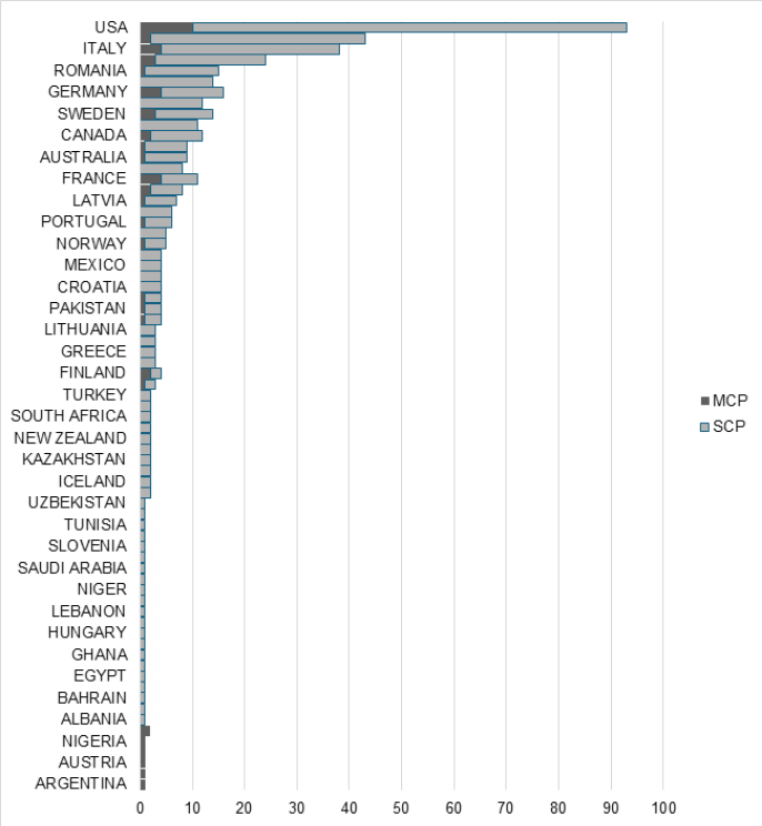 Note: MCP multiple country publications / SCP single country publications