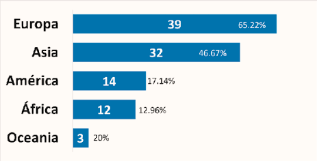 Bélgica mantiene fuertes lazos regionales en Europa, mientras que Brasil prioriza colaboraciones ibéricas y latinoamericanas, como el estudio de Criado et al, (2021) sobre i-labs en España y Brasil, que resaltó su rol en la creación de valor público y colaboración ciudadana. España e Italia extienden sus redes en Europa y América Latina, con España colaborando intensamente con México y Ecuador.