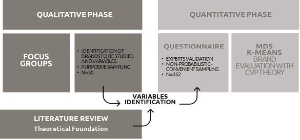 The study was conducted in two phases (Diagram 1); the first aimed to identify the variables and brands underlying appreciated by customers.
