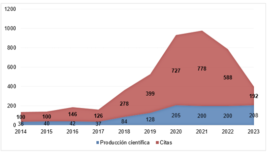 Producción científica y citas por años