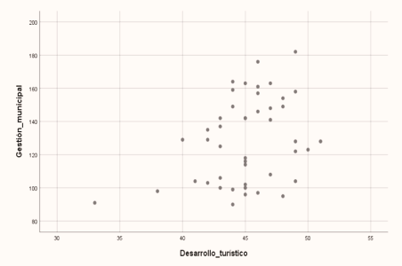 Por otra parte, el efecto de la gestión municipal sobre el turismo depende del desempeño en las etapas de formulación, implementación y evaluación. Una correlación baja podría reflejar debilidades en cualquiera de estas fases, particularmente en el seguimiento y ajuste de las estrategias locales (Tabla 2).