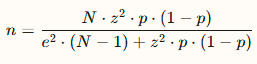 La población objetivo del estudio estuvo conformada por consumidores e visitantes del mercado público de Santiago de Compostela, estimada en aproximadamente 3.000 personas durante el período de recolección de datos. Para determinar el tamaño muestral adecuado, se aplicó la fórmula clásica para poblaciones finitas, considerando un nivel de confianza del 95% (z = 1,96), un error muestral máximo aceptable del 5% (e = 0,05) y una proporción esperada de ocurrencia (p) del 50%, que representa el escenario más conservador y garantiza la máxima variabilidad.
