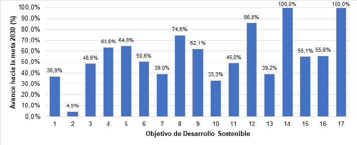 Porcentaje de avance hacia la meta dos mil treinta por objetivo de desarrollo sostenible en Colombia