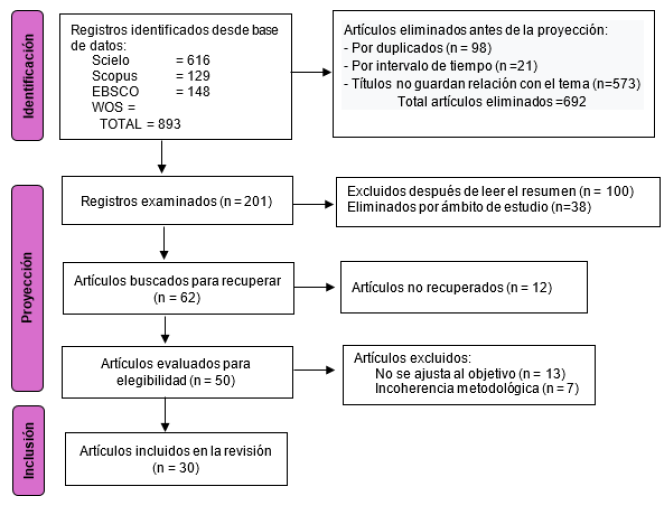 La investigación se circunscribe en el paradigma interpretativo (Gómez-Diago, 2022; Miranda & Ortiz, 2020; Piñero et al., 2022), perspectiva metodológica cualitativa (Piñero et al., 2019), método de revisión sistemática de la literatura, siguiendo los lineamientos de la declaración PRISMA (Preferred Reporting Items for Systematic Review and Meta -Analyses) (Sánchez-Serrano et al., 2022).